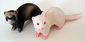チョコエッグのおまけ、「ペット動物コレクション第1弾」のフェレットたちです。左がセーブルフェレットで右がアルビノフェレットです。フェレットとはイタチを家畜化したものらしいです。海洋堂製。