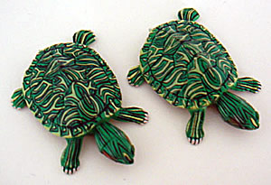 チョコエッグ「ペット動物コレクション第1弾」のミドリガメ(ノーマル)2匹です。海洋堂製。