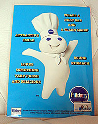 多目的ハガキでドウボーイの特徴が英語で書いてあります。裏には切手を貼る位置にドウボーイとThe Pillsbury Doughboyの文字がブルーで印刷されてます。Produced by 学研。日本製。97円でした。