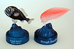 ダイドードリンクのミューのおまけについていたボトルキャップ「深海生物フィギャアコレクション」のNo.8オニキンメとNo.9ザラビクニンです。こちらもスタンドが青くてきれいだったのでドウと一緒に飾ってます。海洋堂、中国製。