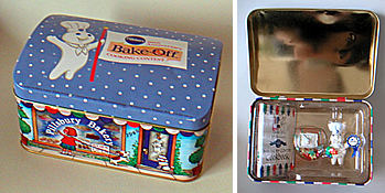 アメリカ在中の知り合いの方から頂きました。Pillsbury社ではベーキングコンテストを主催したりもしているのですが、それの50周年記念の缶みたいです。中にはミニクックブック(ちゃんと作り方が載っています。)とオーナメントが二つ入っています。中国製。缶の裏に定価は$22USと書いてありあす。