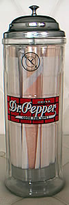 ストロー入れですが、割り箸も一緒に入れちゃってます。丁度ピッタリなんです。アメリカのロサンゼルス近くのベンチュラという町のアンティークショップで買ったと思います。値段は覚えていません。Dr.Pepperはコーラをビールっぽくしたようなソフトドリンク(ルートビール)の商品名です。一時期、日本でも販売していたそうですが最近は見かけません。
